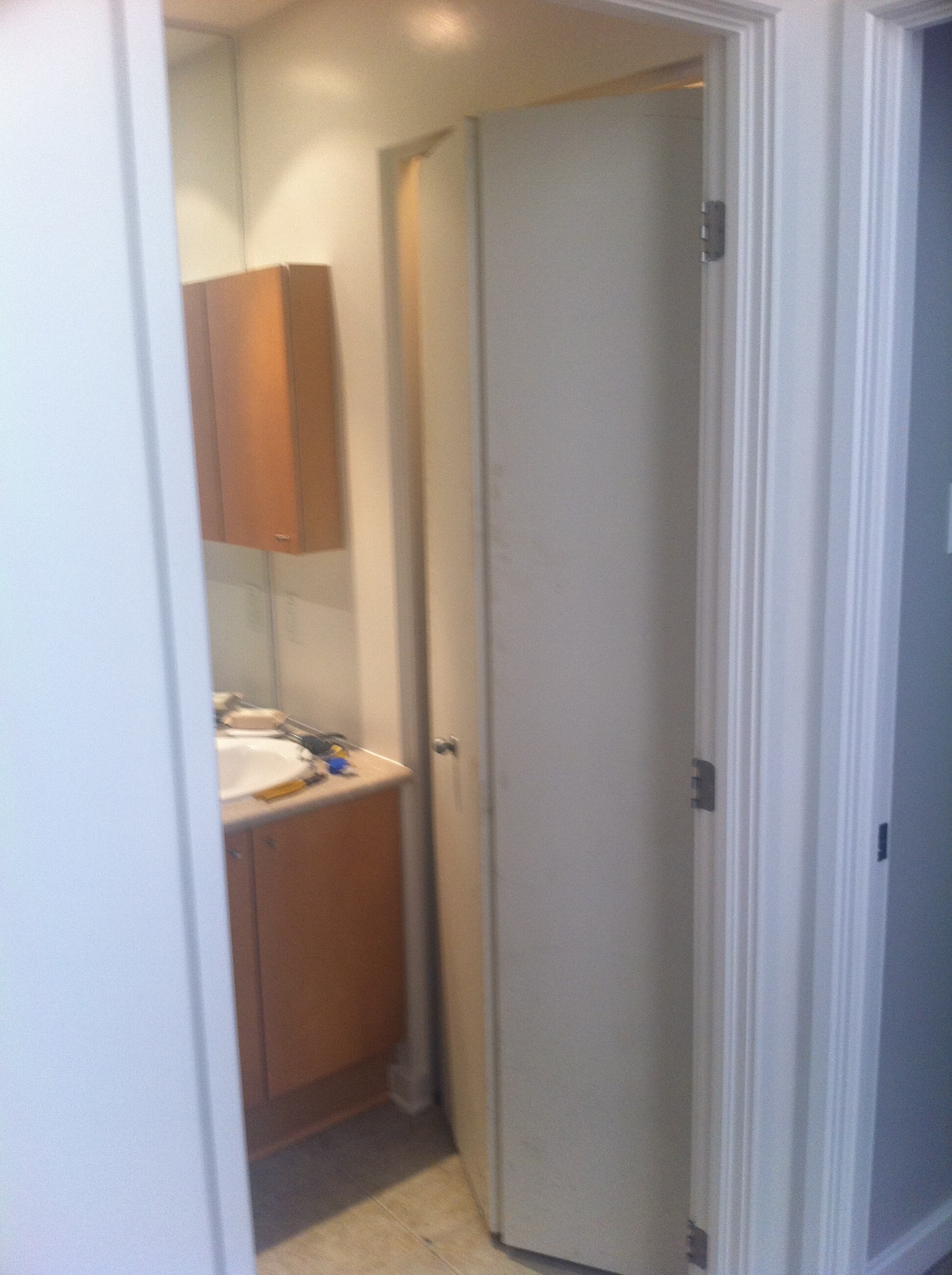How I spent my Canada Day weekend…trying to get the washing machine to fit in the closet and get the closet door reattached. and then reattach the broken knob to the washer so that one does not have to use such things as BBQ tongs to change it.